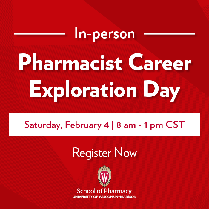 Experience the UW–Madison School of Pharmacy in-person for our Pharmacist Career Exploration Day on Saturday, October 8 at Rennebohm Hall, home of the School of Pharmacy. (Free parking is available.)