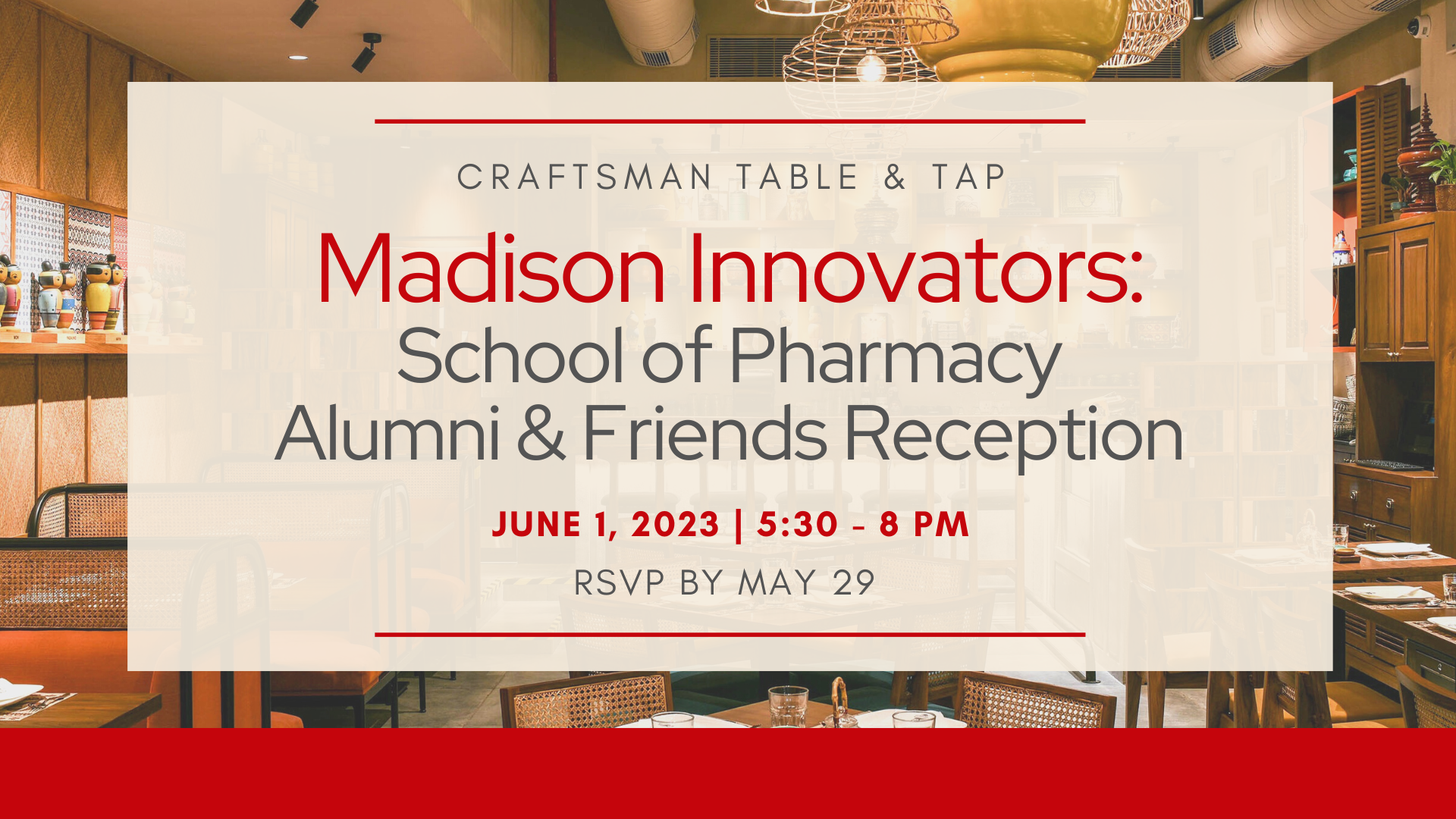 The School of Pharmacy will host an evening reception for Madison-area alumni and friends, featuring a program of alumni and faculty who are innovating in their fields.