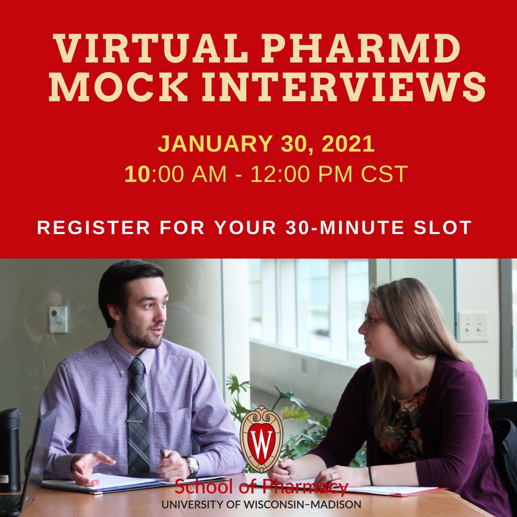 The UW–Madison School of Pharmacy Student Ambassadors are hosting a virtual Mock Interview Day. This event is geared toward applicants and prospective students who plan to apply to our Doctor of Pharmacy program this admissions cycle or the next.