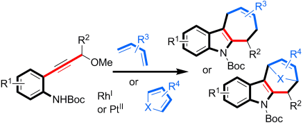 - “Rhodium- and Platinum-catalyzed [4+3] Cycloaddition with Concomitant Indole Annulation: Synthesis of Cyclohepta[b]indoles”